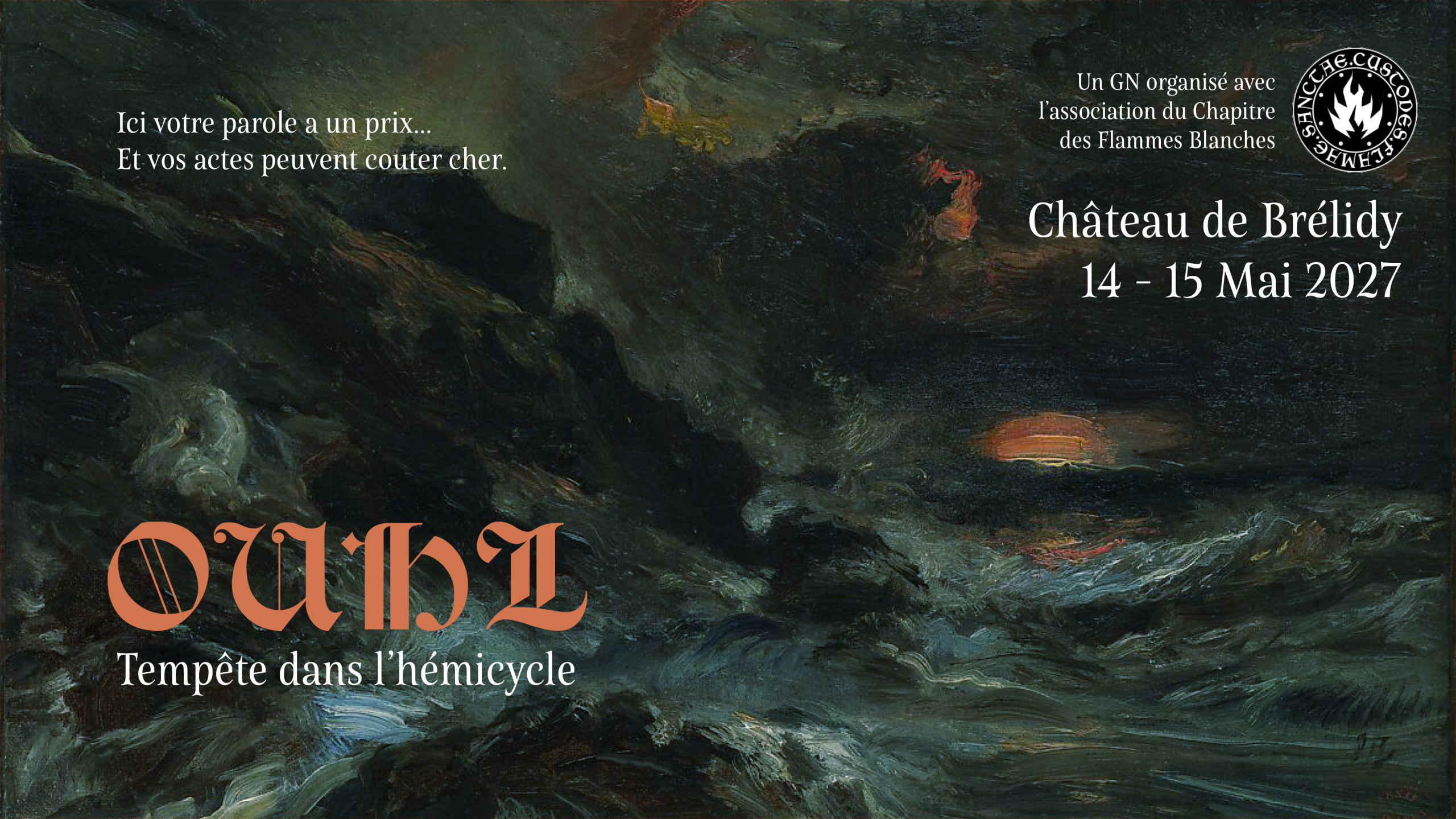 Ouhl – Tempête à l’Hémicycle est un événement d’ordre politique et diplomatique. Il se déroule sur l’archipel du Ponant, au sein d’une assemblée confédérale. Le format proposé se veut avec un nombre de joueurs adapté à l’hébergement en dur sur site. Chaque joueur disposera d’une histoire personnelle lui permettant de disposer de clés de compréhension pour défendre ses intérêts.